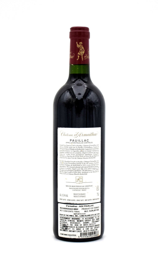 SOLD OUTOriginal price $84.99 - Original price $84.99Original price$84.99$84.99 - $84.99Current price $84.99| /2010 Baron Philippe de Rothschild Chateau d'Armailhac"Polished and very fine with pretty fruit and berry structure. Full and silky with a delicious finish. It's so good now to drink but has depth and ... View full detailsOriginal price $84.99 - Original price $84.99Original price$84.99$84.99 - $84.99Current price $84.99| /SOLD OUT